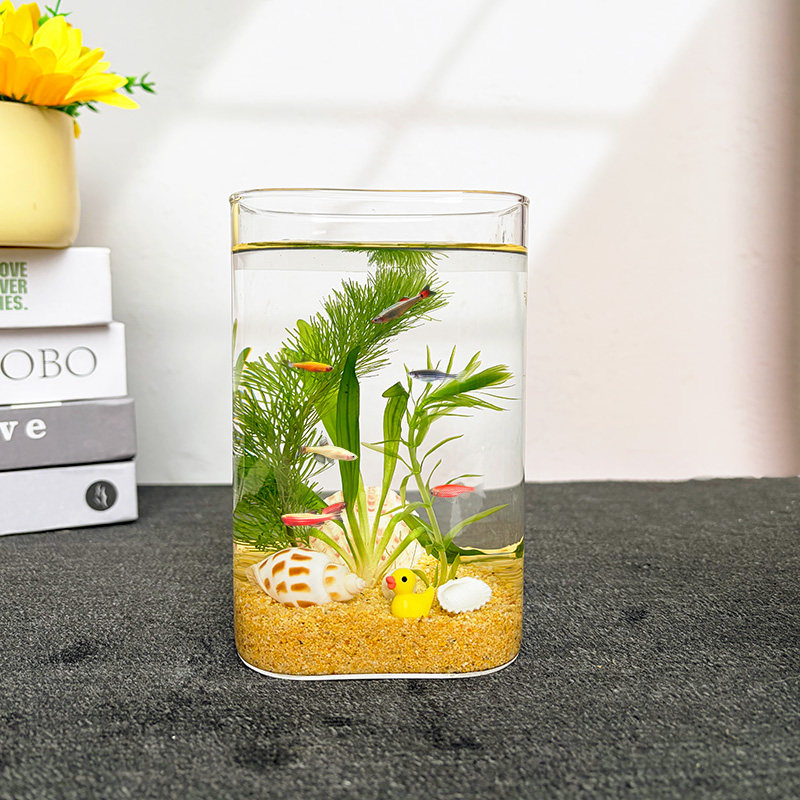 淘创意斗鱼生态养鱼缸适用缸小型网红造景桌面观赏小夜灯装饰玻璃缸