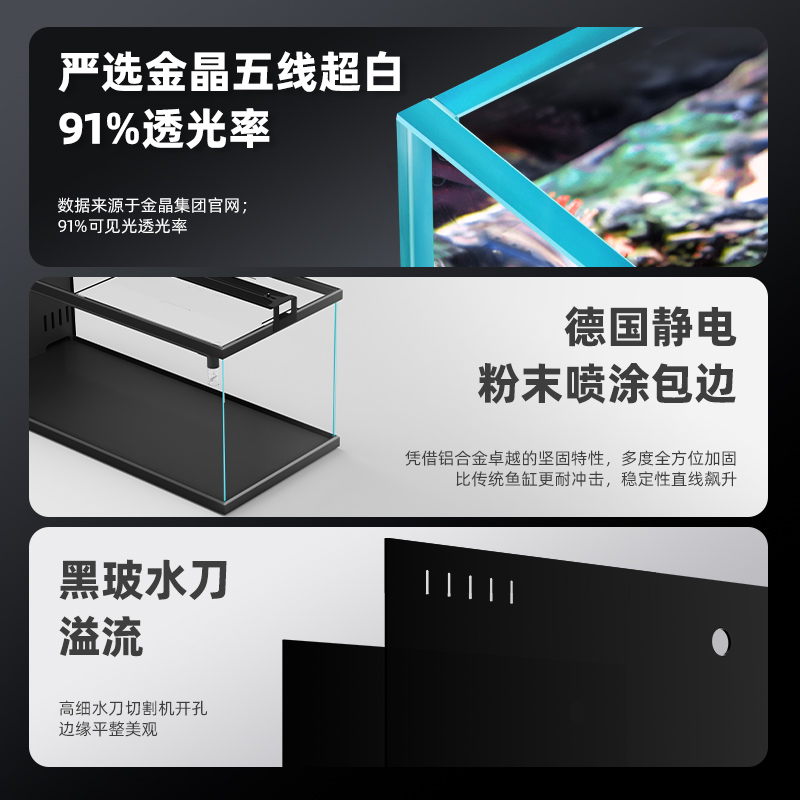 淘新款金鱼缸客厅电视柜旁落地静音超白玻璃立式方形生态底滤水族箱