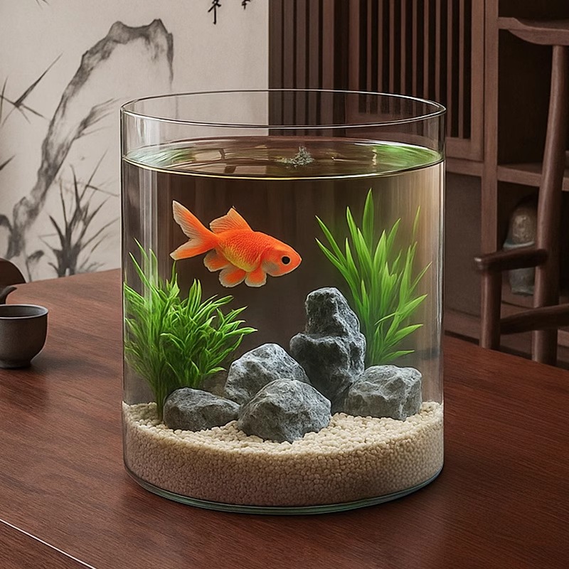 这款玻璃缸是家用桌面小型鱼缸,圆形设计,适合放在客厅或办公室工位。其透明玻璃材质,清晰展示斗鱼和金鱼的美丽生态。小巧精致,不占空间,创意十足。为你的家居或办公环境增添生气,适合喜欢养鱼的爱好者。这是一款既能观赏又具有良好实用性的鱼缸,让你的生活更加美好。