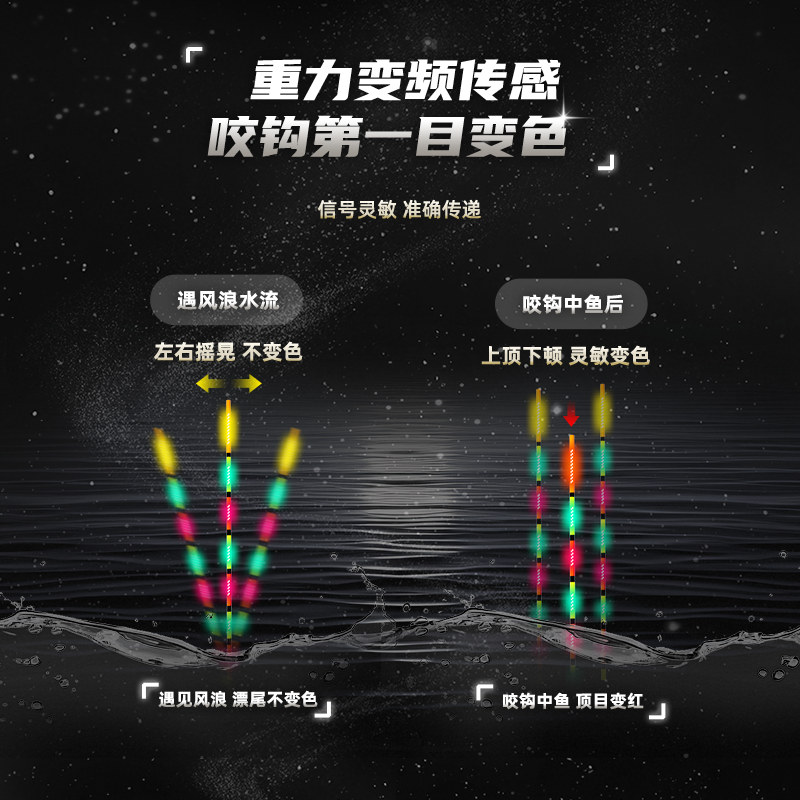 天猫六鱼夜光漂一目变色led咬钩变色电子漂高亮醒目至轻灵敏鱼漂浮漂