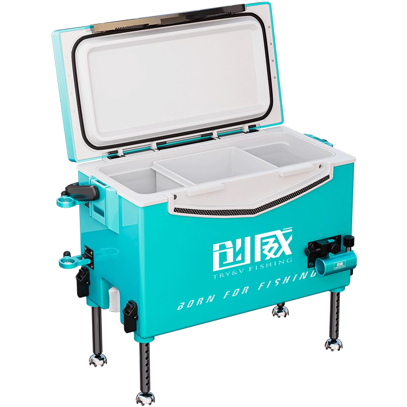 天化氏一味冰蓝粉钓箱 29L聚氨酯发泡四脚升降全套钓鱼箱