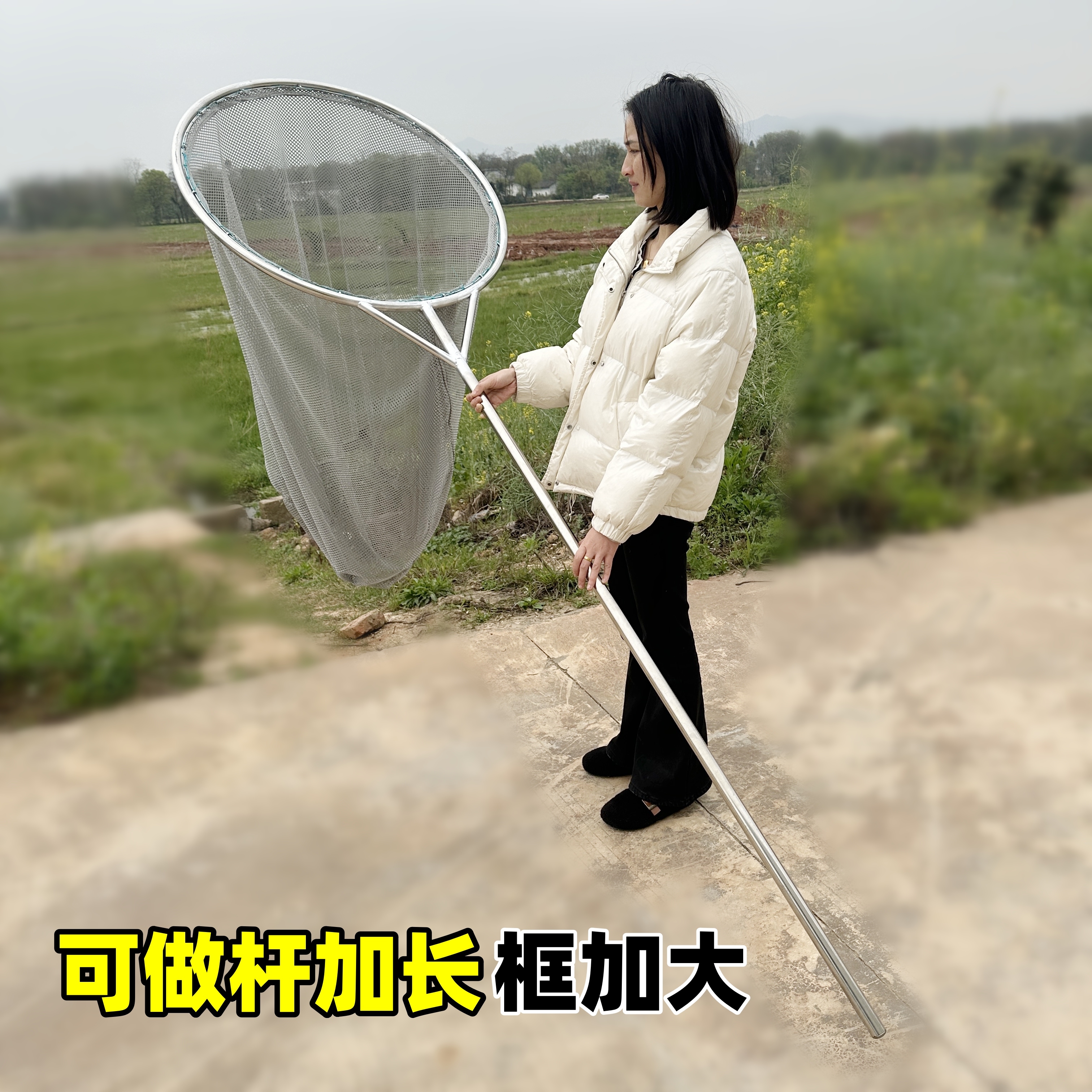淘实心双圈防磨不锈钢抄网头加粗手工网兜捞鱼网大物专属抄鱼捞鸭网