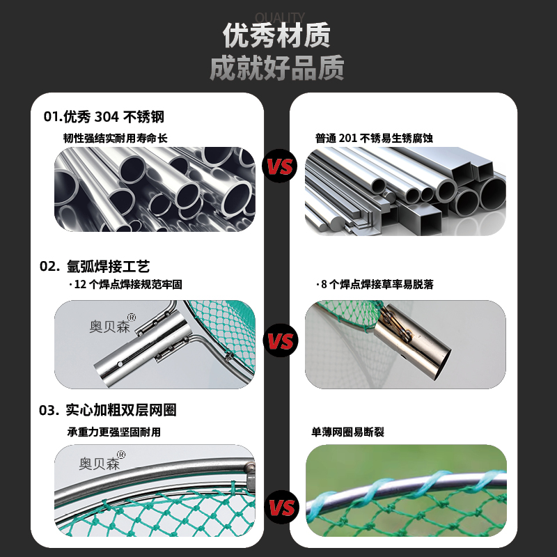 不锈钢抄网捞鱼网渔具一体打鱼网超硬鱼捞海鲜赶海工具网抄捞子