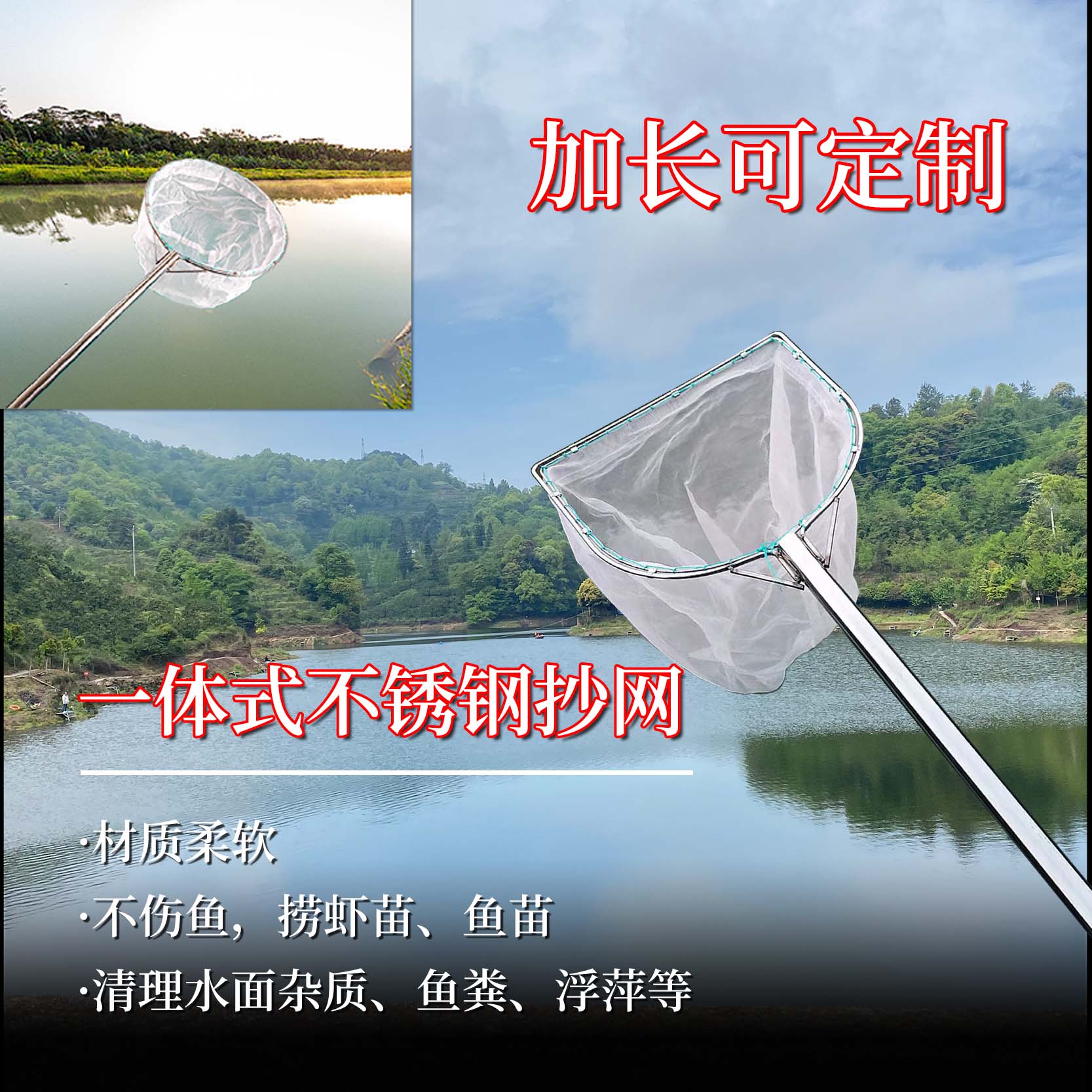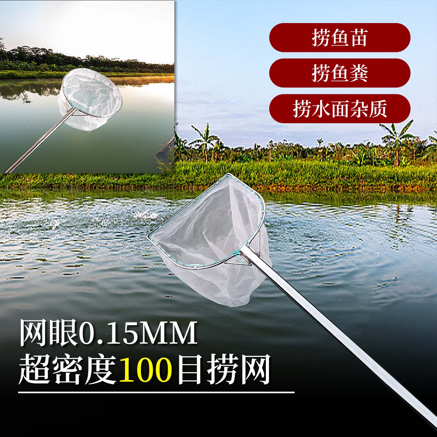 商品介绍:这款不锈钢超细网鱼粪清洁鱼捞抄网是一款高效的渔业工具。其特色在于使用不锈钢材质制成,耐用且不易生锈。这款抄网拥有超细的网眼设计,高达100目,能够轻松捕捉小到鱼苗和虾蟹等水生生物。同时,其精细的网眼设计还可以有效过滤鱼粪和其他杂物,确保捕获物的纯净。无论是钓鱼还是池塘清洁,这款超小眼的抄鱼网兜都是您理想的选择。既方便打捞又保证了鱼类的完整保留,让您的捕鱼体验更上一层楼。