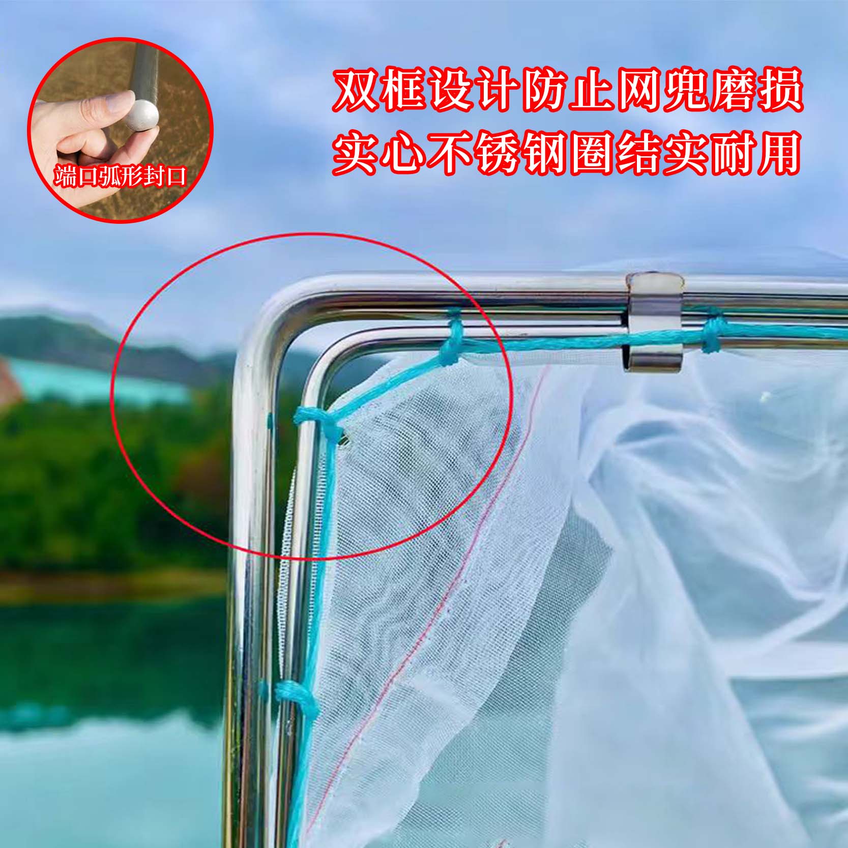 淘方形实心抄网头不锈钢抄网圈大物抄网圈鱼塘抄鱼捞虾赶海鱼网配件