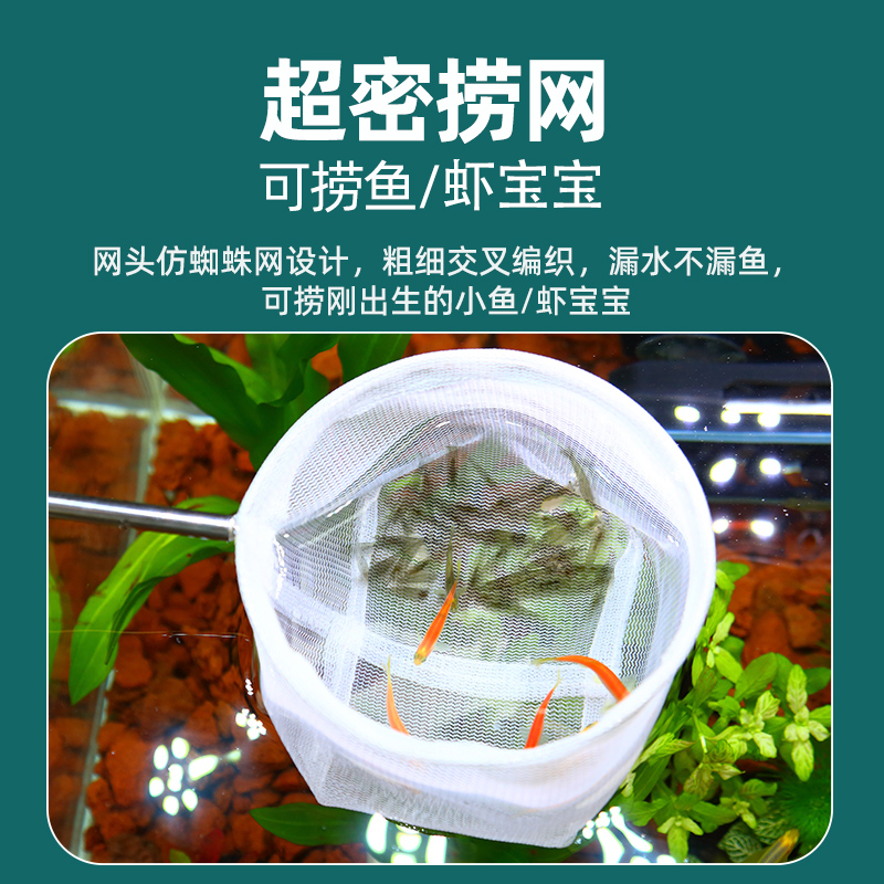 不锈钢可伸缩小号3D渔捞鱼网观赏鱼孔雀鱼斗鱼鱼缸抄网兜密网鱼捞