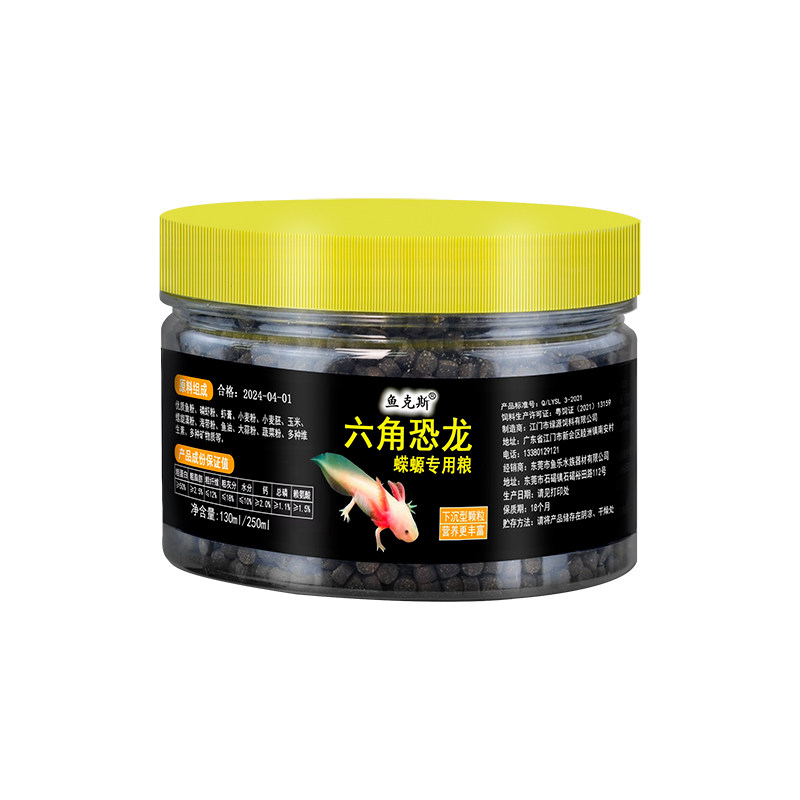 六角恐龙鱼(墨西哥钝口螈)专用高蛋白下沉型鱼粮,专为满足其独特食性设计。精选优质鱼虾蛋白、昆虫粉及天然螺旋藻等原料,蛋白质含量高达45%以上,助力六角龙健康生长、增强体色与活力。饲料采用下沉底型工艺,避免浮水浪费,贴合其底层觅食习性,减少残饵污染水质。颗粒适中,易消化、不胀肚,富含维生素与矿物质,提升免疫力。适用于各生长阶段的六角恐龙鱼,是水族爱好者喂养宠螈的理想选择。科学配方,安全无添加,让爱宠吃得健康,活得精彩。