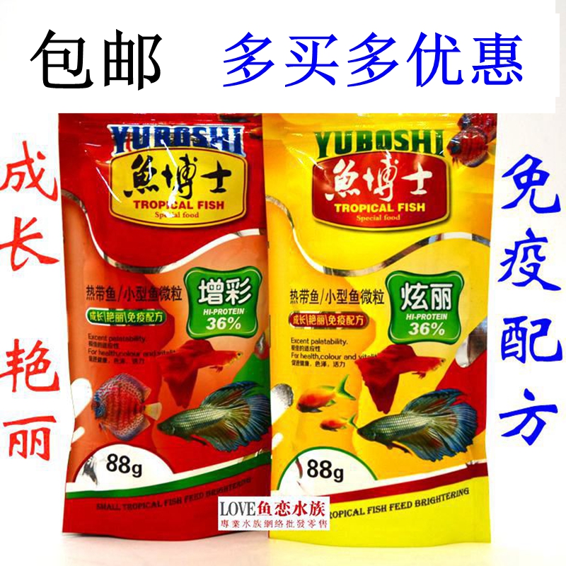 淘宝鱼博士增彩小型热带鱼粮观赏鱼饲料孔雀微颗粒鱼食增色不浑水