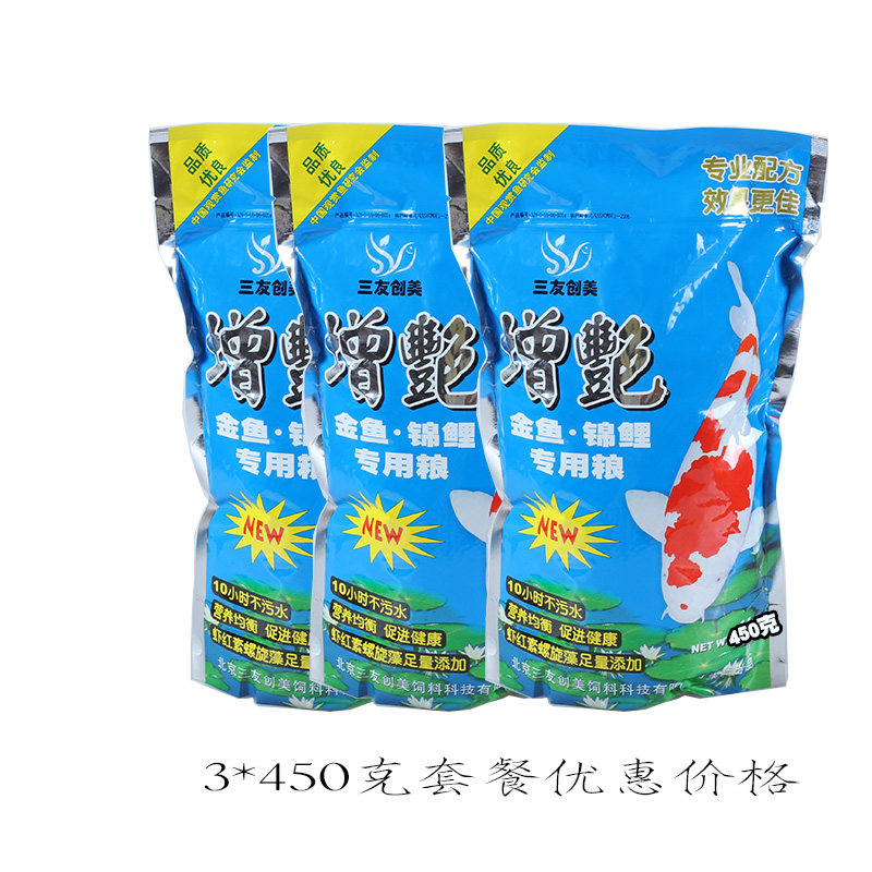 淘宝三友创美增艳鱼食锦鲤鱼饲料金鱼粮小型鱼三元观赏金鱼饲料鱼饵料