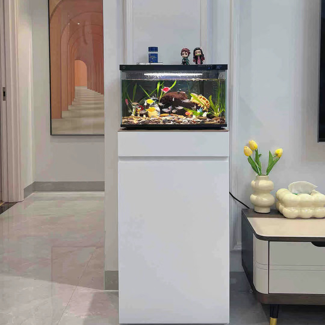 2025新款超白玻璃高端客厅鱼缸生态智能家用中型带柜子一体金鱼缸