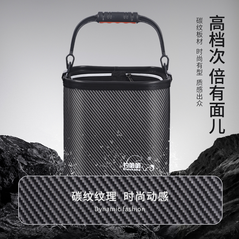 天猫钓哈哈户外便携碳纹打水桶加厚加硬材质装鱼桶一体热压工艺钓鱼桶