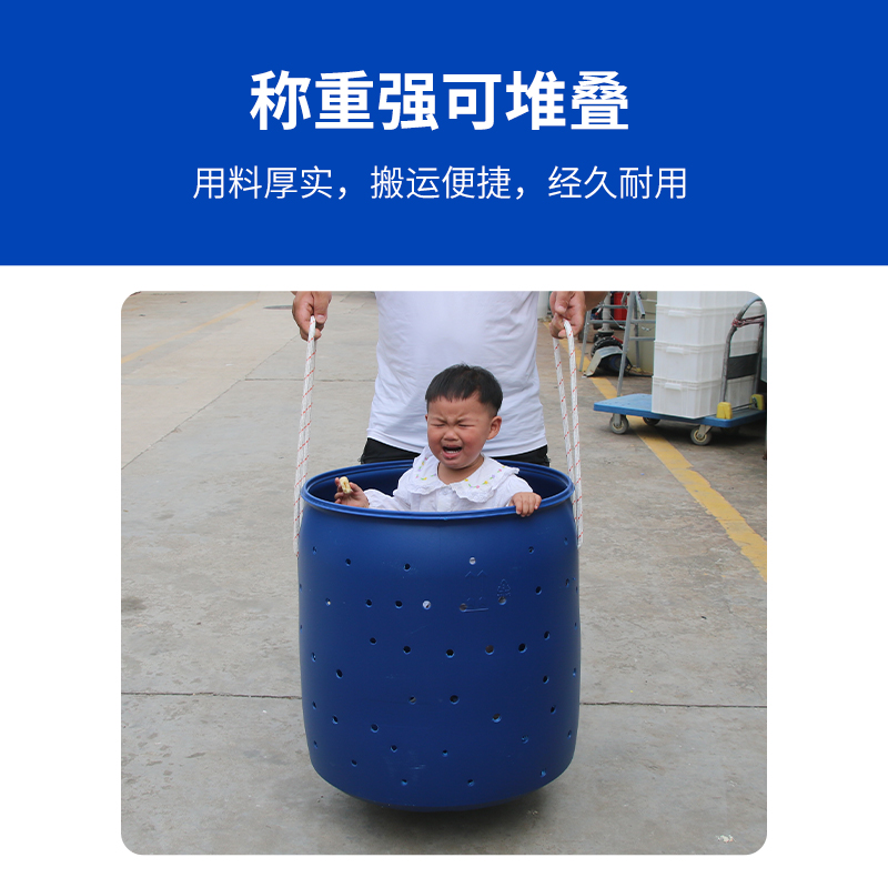 商品介绍:这款化工桶法兰桶海鲜桶,容量为150升,特别适合海鲜存储和运输。它采用优质加厚塑料制作,具有强大的耐用性和稳固性,能够承受高达200kg的重量。铁箍加固,更加安全可信赖。桶身带有盖子,可以有效防止污染和异味侵入,保持海鲜的新鲜度。这款桶还非常适用于装鱼和其他水产,是收纳和储存的理想选择。其多功能设计,让它不仅适用于家庭使用,也适用于商业用途。