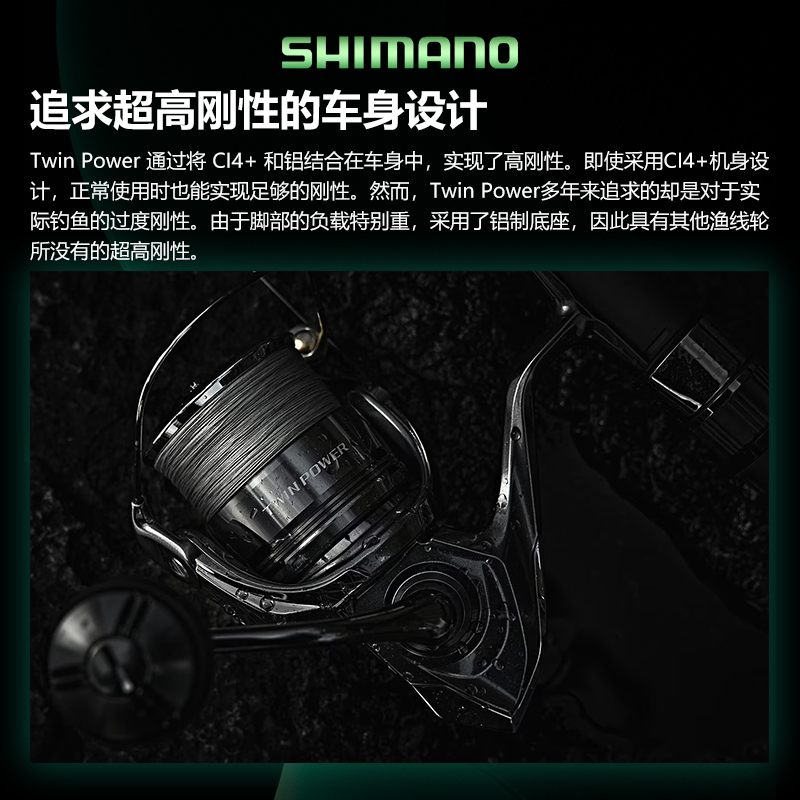 全新款SHIMANO TWINPOWER纺车轮,是专为爱好钓鱼人士打造的顶级产品。采用先进技术与材料,如高强度耐用材质和精准纺车技术。搭载高强度远投鱼线轮,能实现超长距离精准的抛投,助力捕鱼高手大展身手。SHIMANO TWINPOWER纺车轮具备卓越的抗压力和稳定性,能应对复杂多变的钓鱼环境,提供卓越的使用体验。凭借强大性能和设计优势,成为钓鱼爱好者的首选装备。尽享轻松愉快的钓鱼时光,全新SHIMANO TWINPOWER纺车轮是您的不二之选。