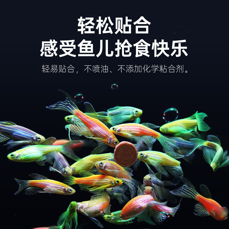 天海豚粘贴鱼粮热带观赏鱼饲料孔雀鱼红绿灯靓色贴片鱼粮小型鱼饲料