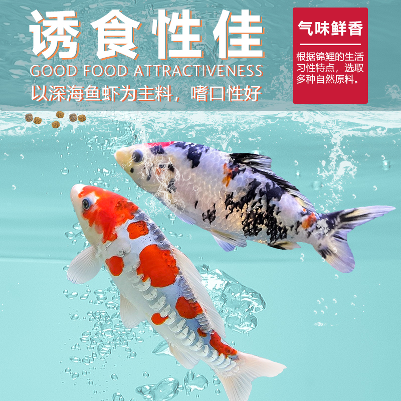 海豚锦鲤鱼粮育成色扬成长锦鲤蛋白鱼食锦鲤饲料颗粒焕色金鱼饲料