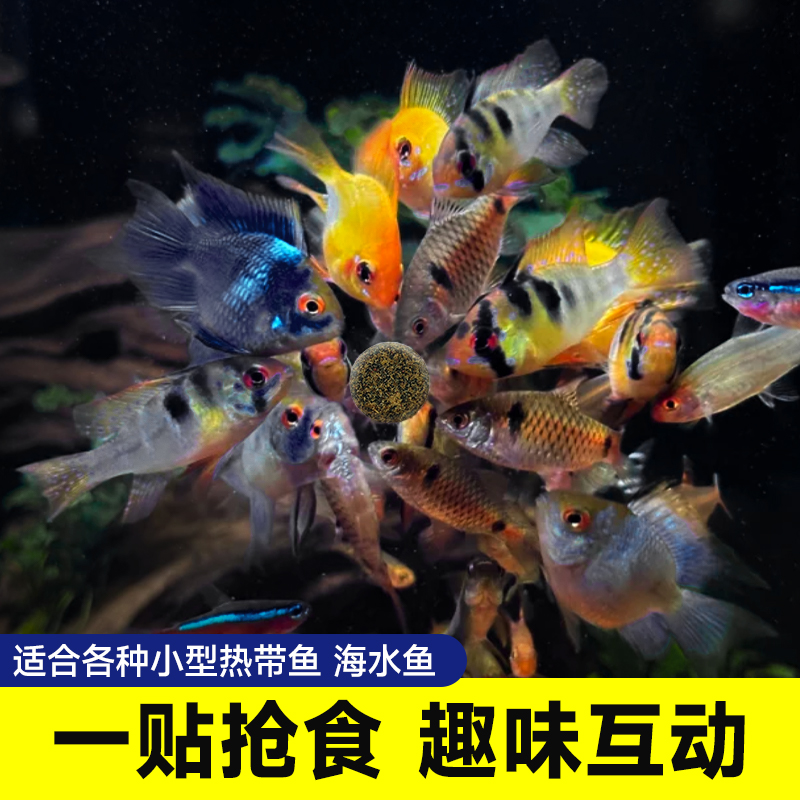 天猫海豚粘贴鱼粮热带观赏鱼饲料孔雀鱼红绿灯靓色贴片鱼粮小型鱼饲料