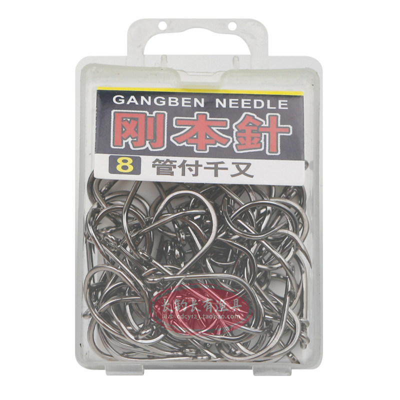 淘宝刚本针管付千又鱼钩 有倒刺千又鱼钩带孔钩把钓鱼钩海钓鱼钩渔具