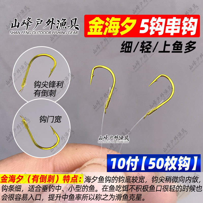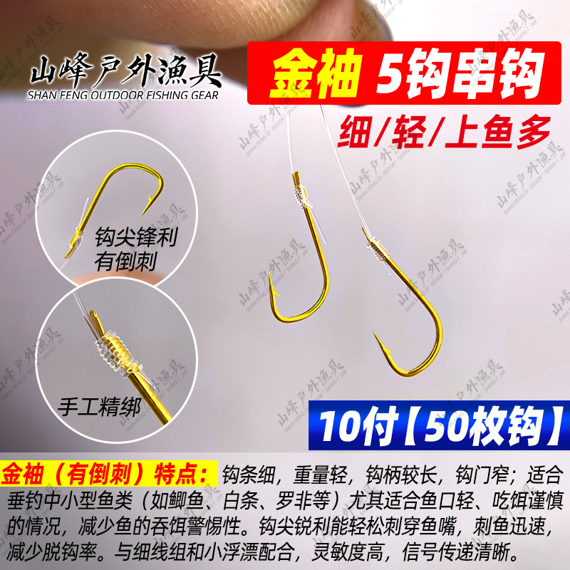 淘宝串钩钓组5本金袖鲫鱼防缠绕线组钓鱼钩金海夕溪流路亚抛钩成品钩