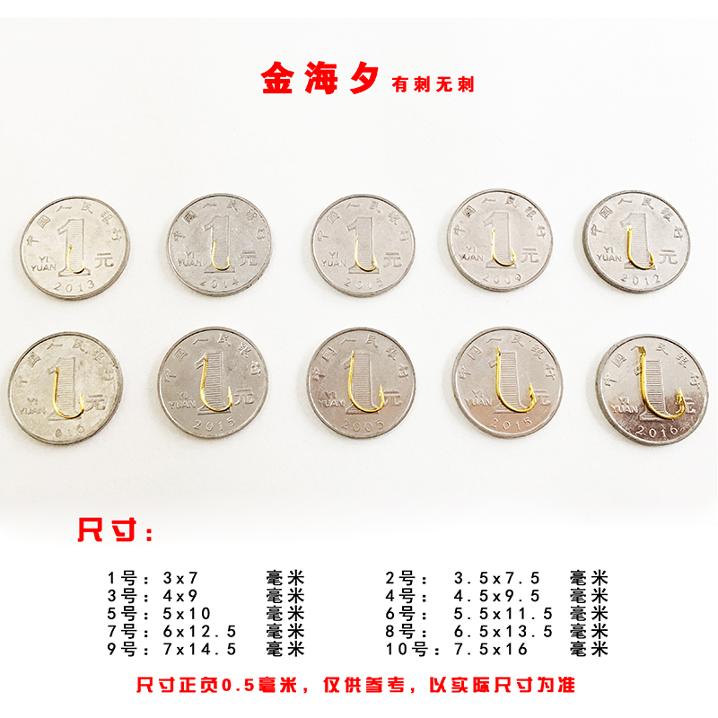 淘宝金海夕鱼钩有倒刺日本进口海夕金袖钩小号无刺钓鱼钩散装正品套装
