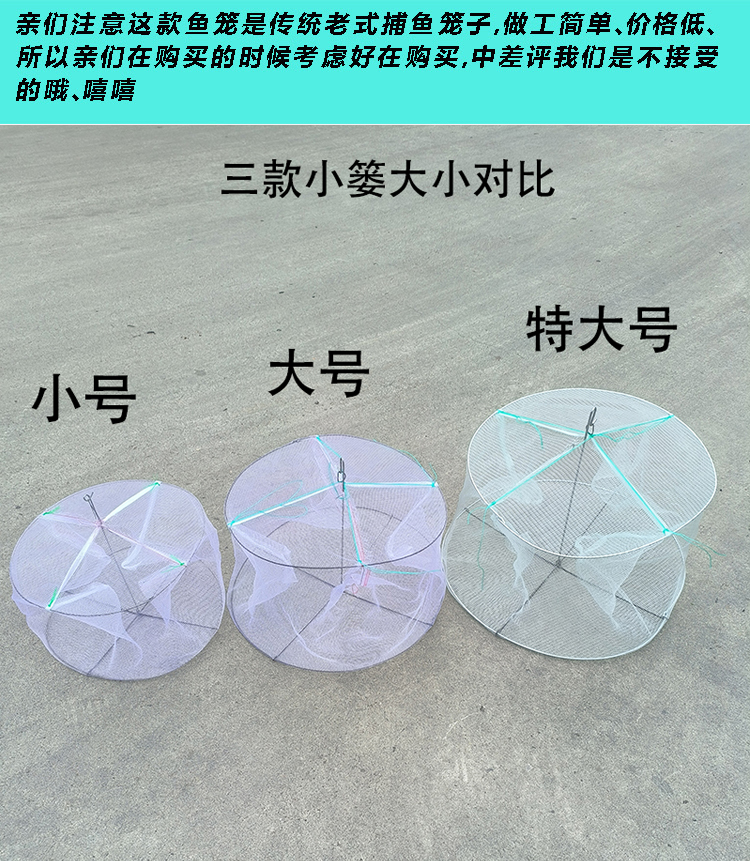 商品介绍:这款虾篓捕鱼篓捕鱼笼是专业的抓鱼抓虾工具,适用于儿童以及成年人。采用高质量材料制成,具有良好的耐用性和稳定性。该捕鱼笼具有多种功能,适用于捕捉各种鱼类和虾类,如龙虾和鳝鱼等。其设计独特,易于使用和携带,让您的捕鱼体验更加轻松愉悦。此外,该商品安全无害,不会伤害捕捉到的海洋生物。是一款适合家庭娱乐、户外探险和水上运动的理想选择。