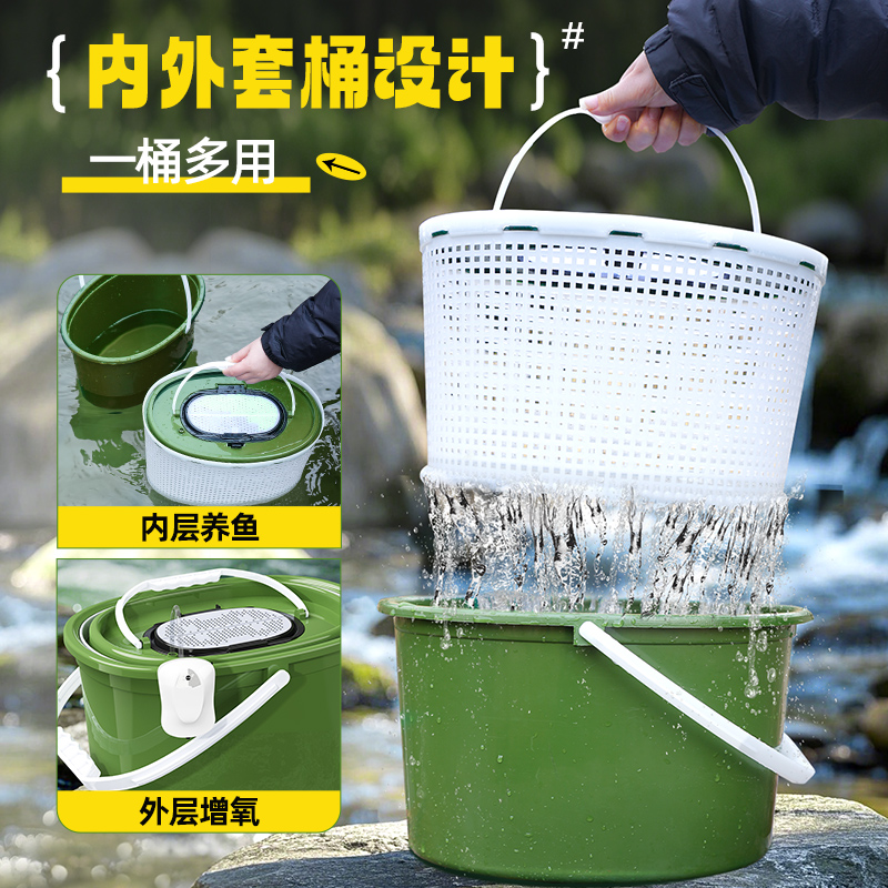 活鱼桶2025新款钓鱼桶多功能加厚鱼护鱼桶一体鱼箱野钓专用鱼护桶