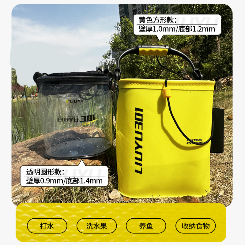 天梦达打水桶钓鱼路亚野钓可折叠手提鱼护装鱼桶户外鱼箱透明活鱼桶