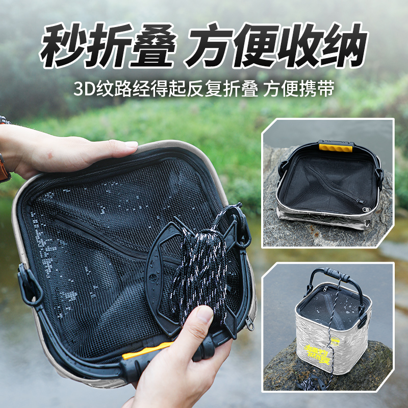 天钓鱼可折叠打水桶装鱼桶活鱼箱多功能带绳防跳网小鱼桶渔具鱼护桶