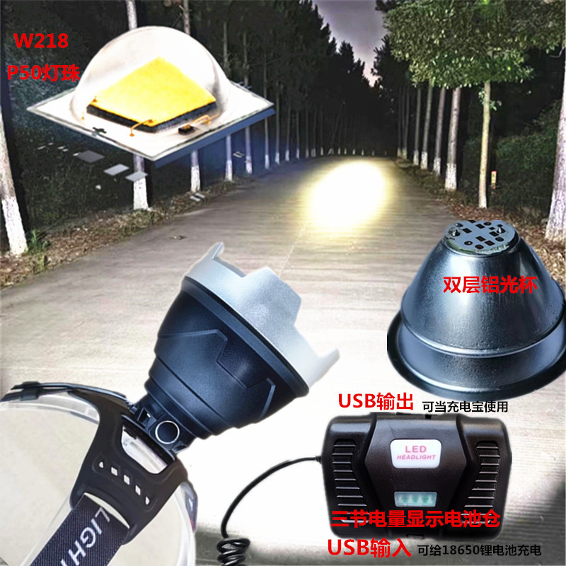 淘宝新款P50头灯充电超亮头戴式聚光远射王led钓鱼户外登山挖矿灯