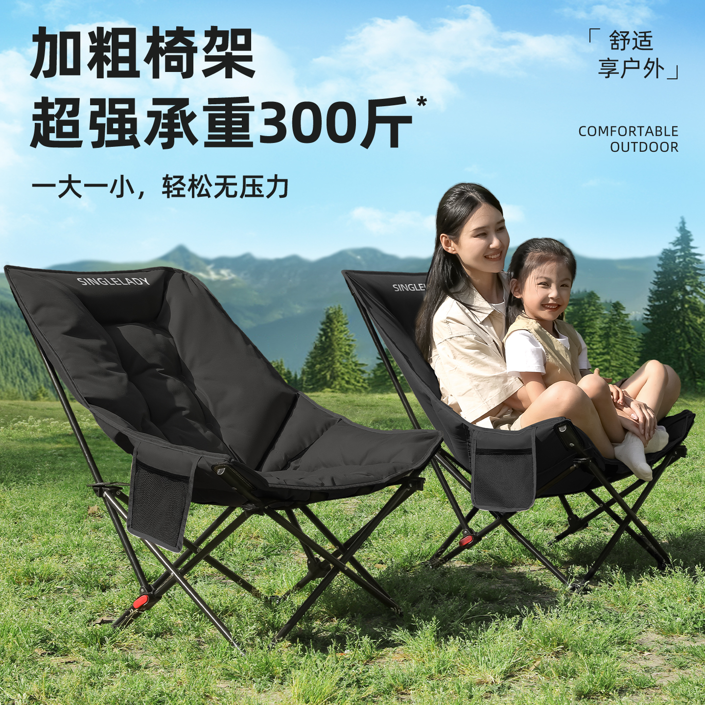 天猫户外便携可折叠椅加棉月亮椅露营新款椅子坐躺休闲两用钓鱼沙滩椅
