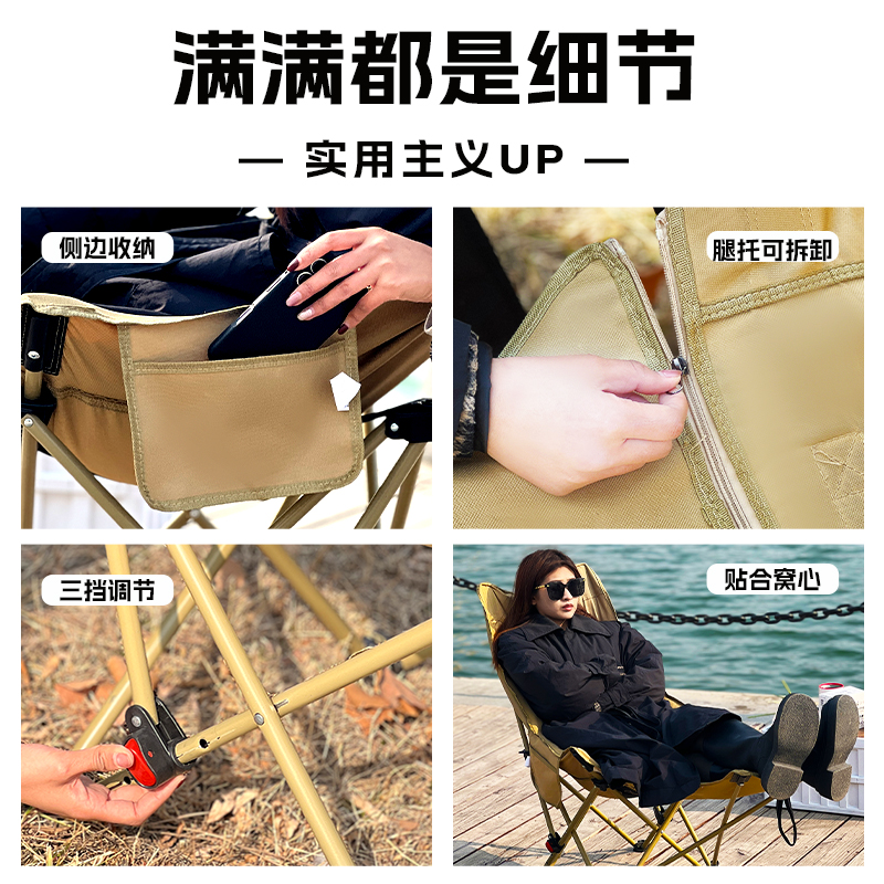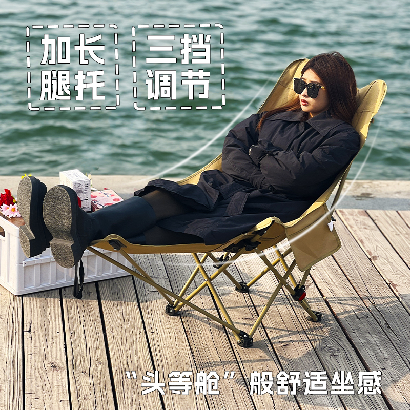 天猫暴走怪兽户外月亮椅加棉高背可调节带脚托露营便捷式钓鱼午休躺椅