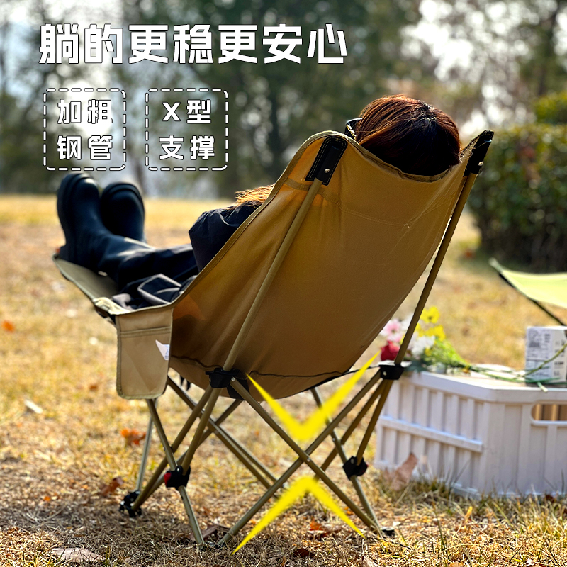 户外折叠椅午休躺椅月亮椅新款露营椅子便携式沙滩椅钓鱼野餐椅凳