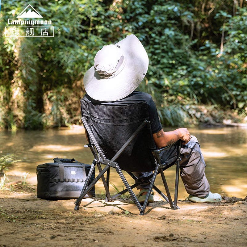 牧高笛高背月亮椅折叠碳钢椅户外露营钓鱼可调节加高靠背便携舒适