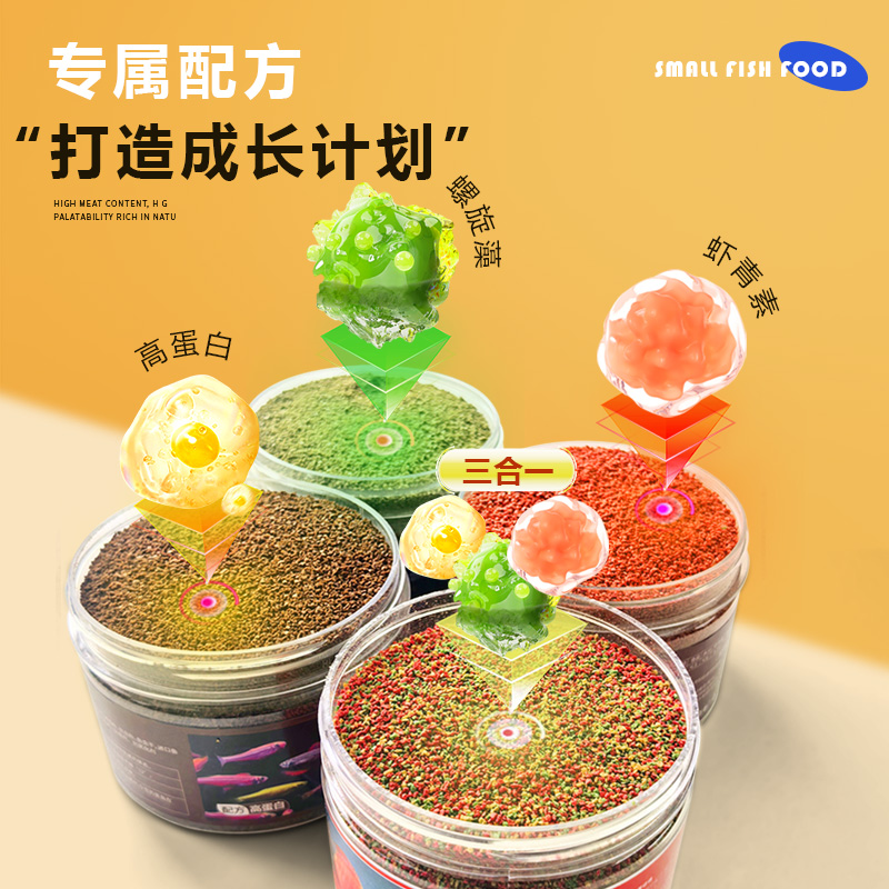 天猫小型鱼饲料鱼食小颗粒热带鱼饲料观赏孔雀鱼饲料灯科鱼鱼苗鱼粮