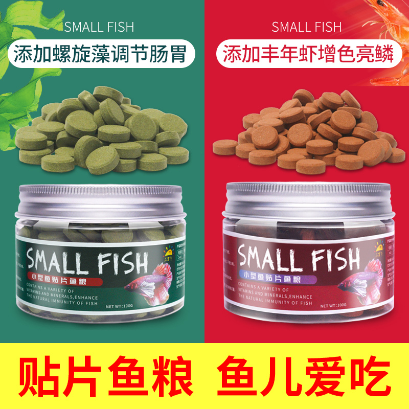 天猫花百年小型鱼贴片鱼食孔雀鱼饲料热带鱼金鱼灯鱼粮鹦鹉鱼红虫发色