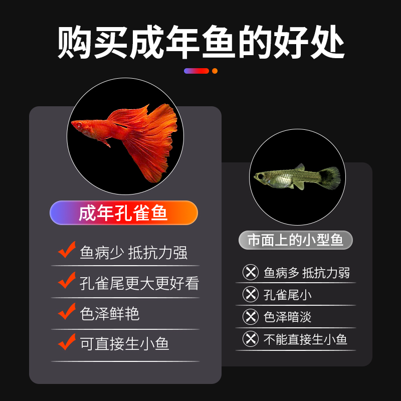 淘孔雀鱼纯种观赏鱼小型淡水好养热带鱼活体斑马金鱼小鱼鱼苗凤尾鱼