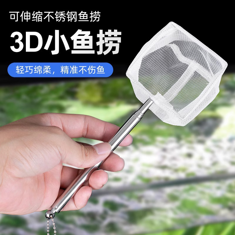淘小型观赏鱼孔雀鱼斗鱼鱼缸手工3D不锈钢伸缩手抄捞网鱼捞鱼兜渔捞