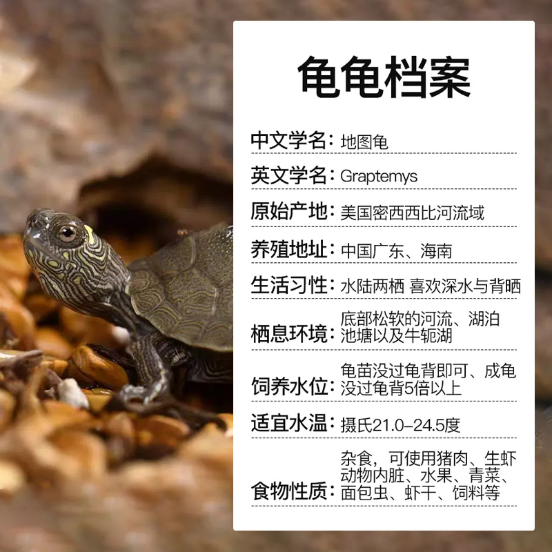 天猫地图小乌龟活物宠物龟苗观赏龟火焰龟水龟黑瘤地图深水中华草龟