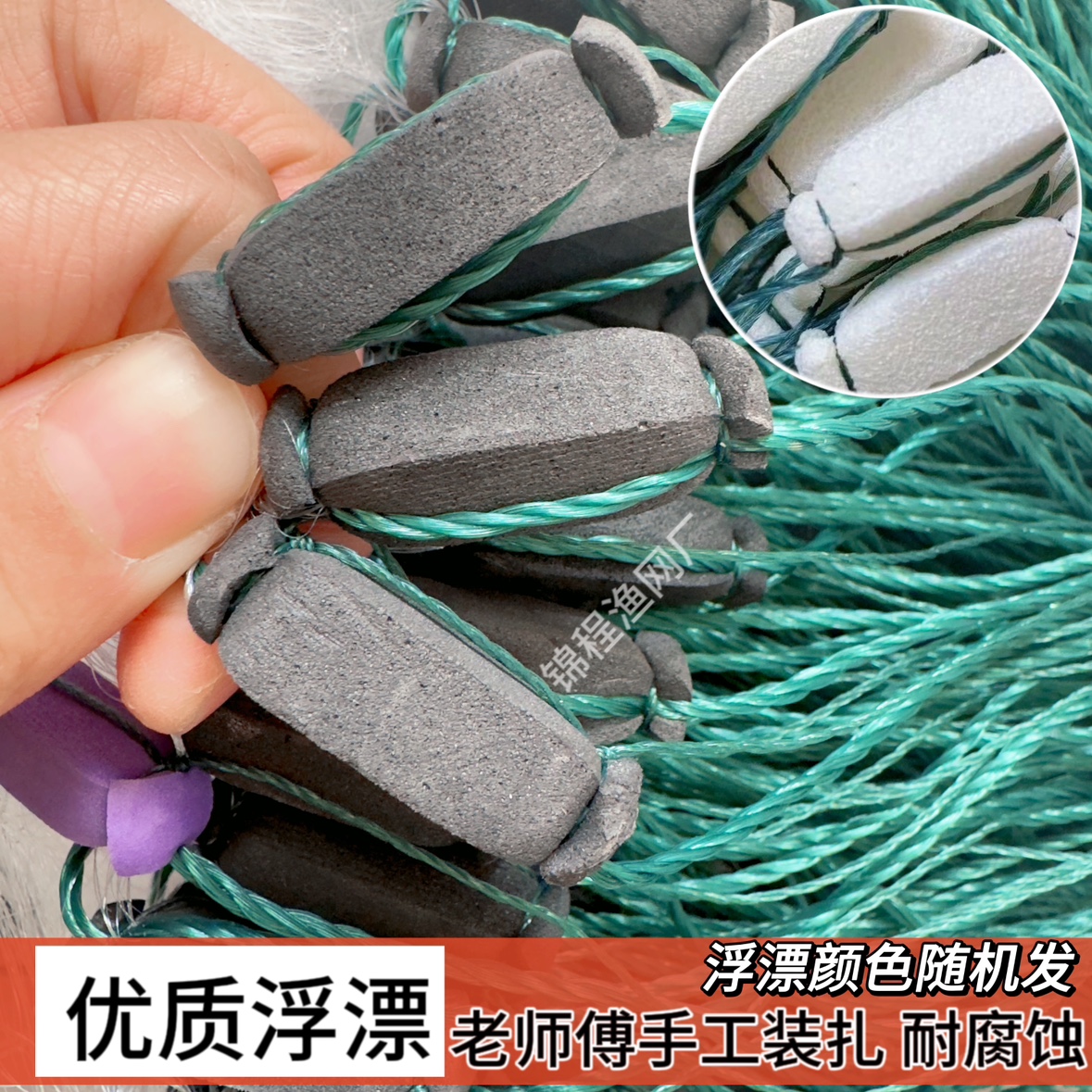 船牌丝渔网绳坠包坠鱼网三层沉网粘网捕鱼塑料漂水库丝网加重挂网