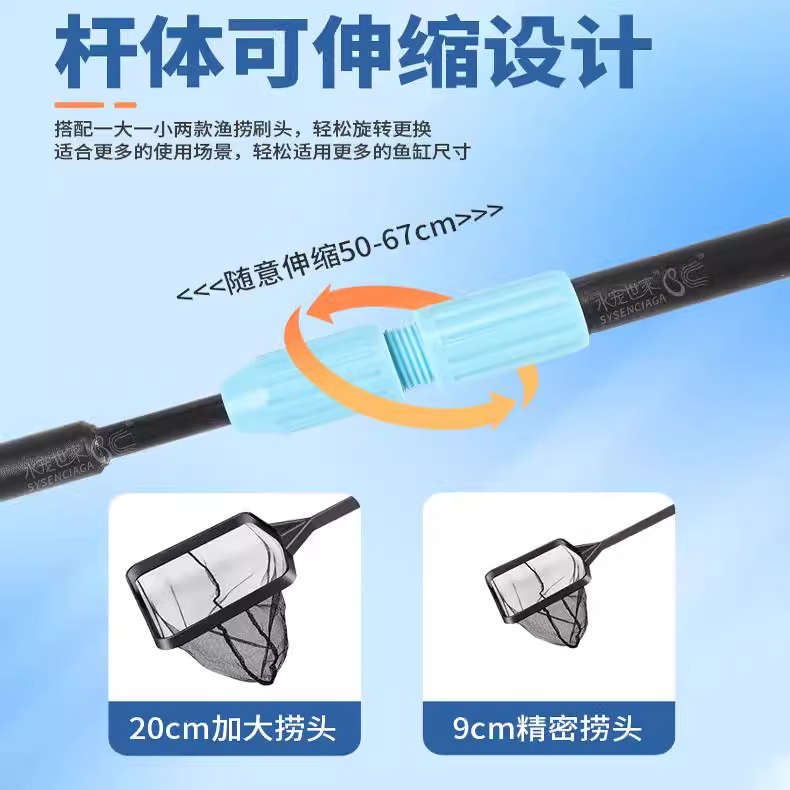 淘不锈钢可伸缩鱼捞鱼缸捞小号3d渔捞抄网兜密网热带观赏鱼捞鱼网