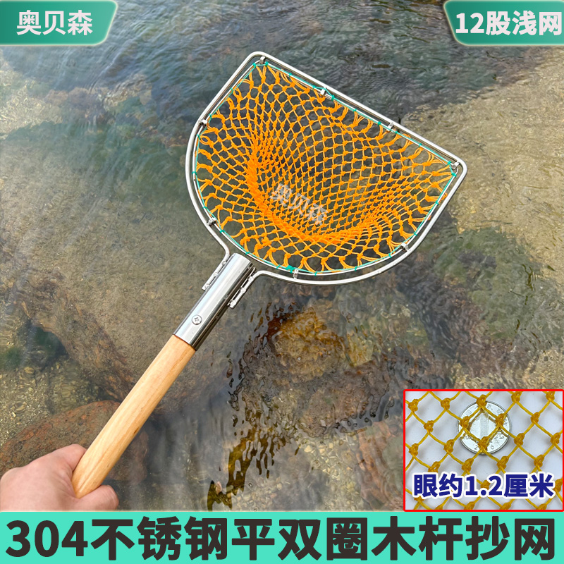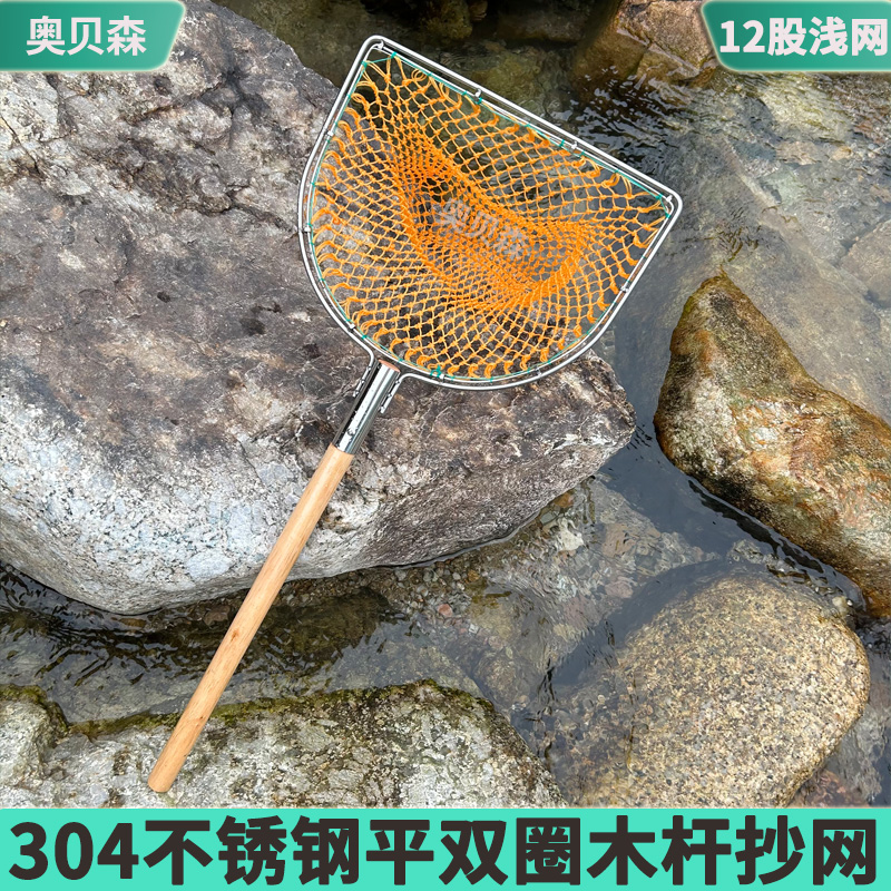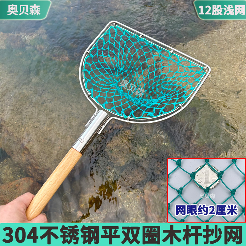 浅网双圈304不锈钢捞鱼网市场卖鱼捞海鲜手抄网赶海三角渔捞网兜