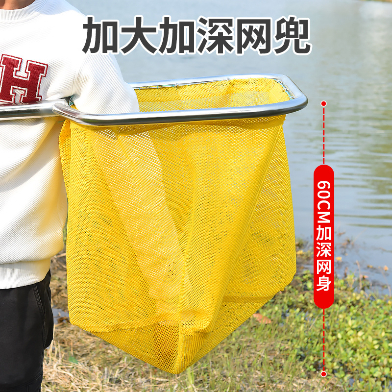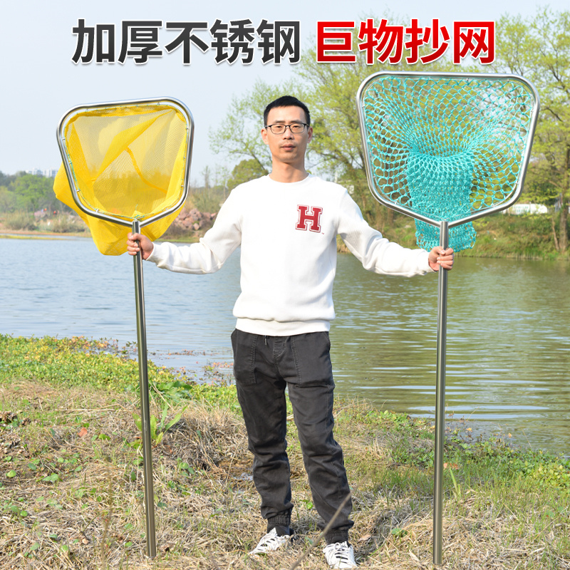 淘方形不锈钢实心手抄网套装大物抄网头网兜鱼塘抄鱼捞虾赶海捞鱼网