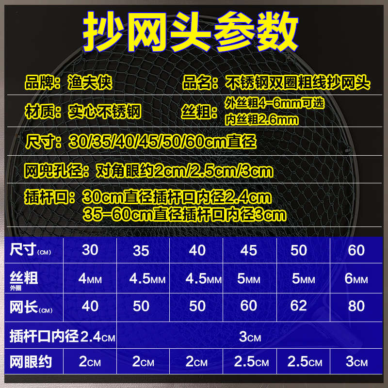 淘宝实心双圈防磨不锈钢抄网头加粗手工网兜捞鱼网大物专属抄鱼捞鸭网