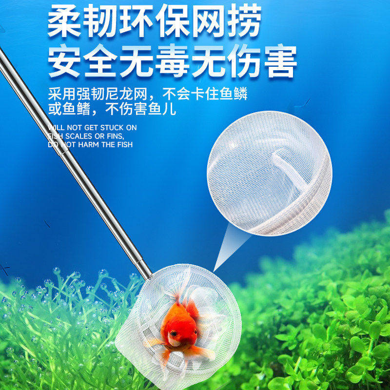 淘鱼捞不锈钢鱼网渔网方形鱼缸网兜金鱼伸缩观赏鱼手抄水族箱渔捞
