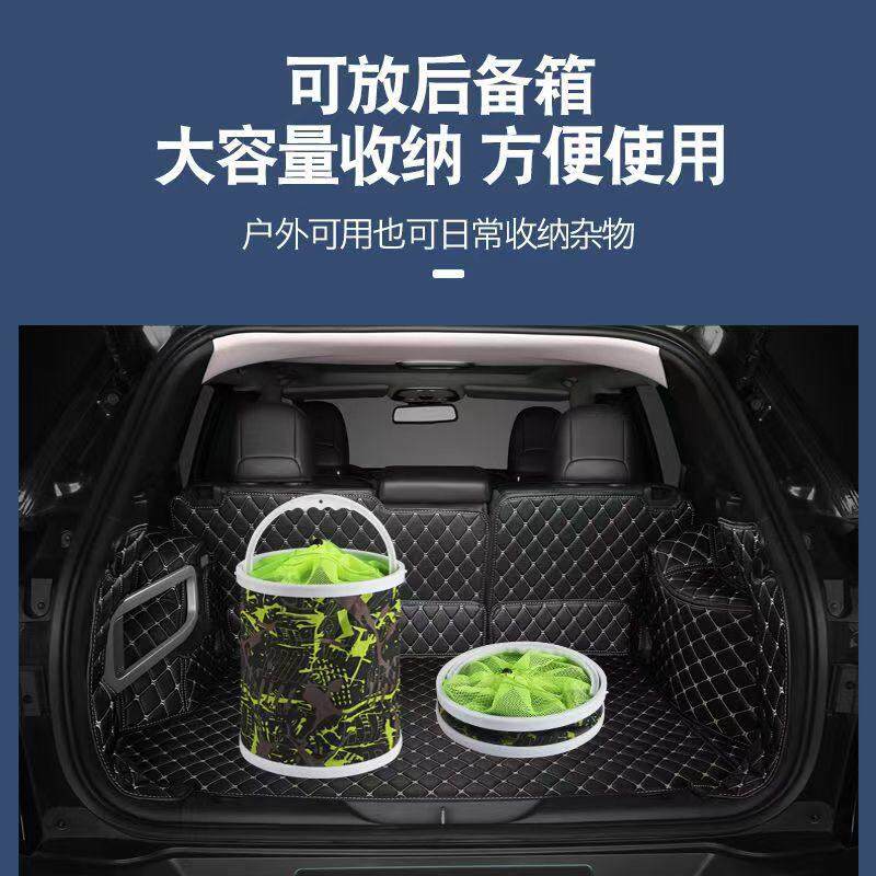 户外37L伸缩桶带盖折叠桶多功能汽车水桶野营杂物箱钓鱼桶收纳桶