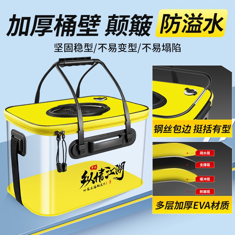 天垂弦活鱼桶路亚透明鱼桶可折叠手提野钓鱼护装鱼桶户外鱼箱打水桶