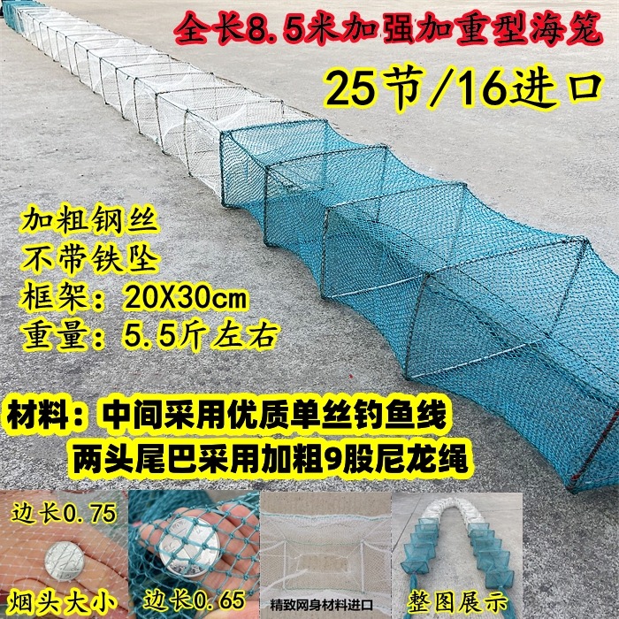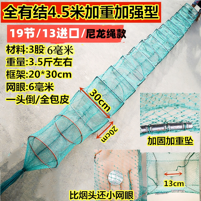 25米30米有结虾笼捕虾网渔网龙虾网螃蟹地网笼黄鳝蟹笼抓鱼笼湖南
