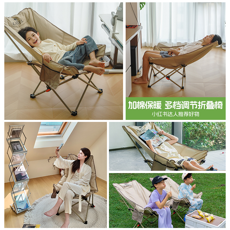 天猫骆驼加厚夹棉高背月亮椅躺椅户外露营折叠可睡可躺午睡椅懒人钓鱼