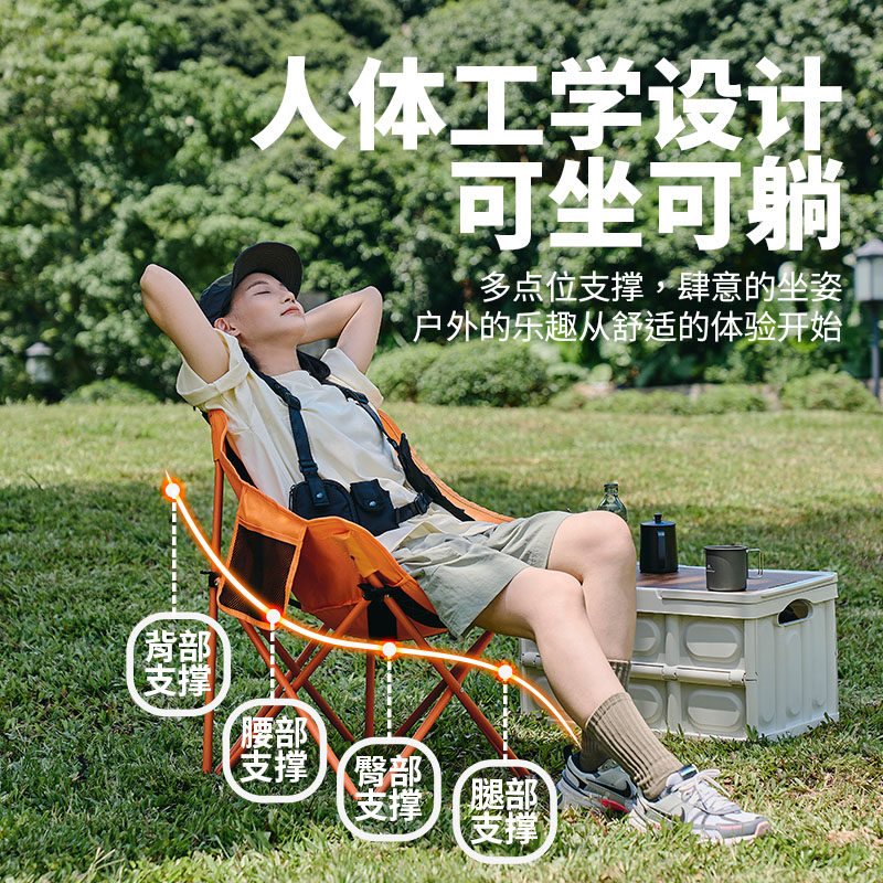 原始人户外折叠椅露营椅子月亮椅钓鱼凳便携式躺椅午休沙滩椅野餐