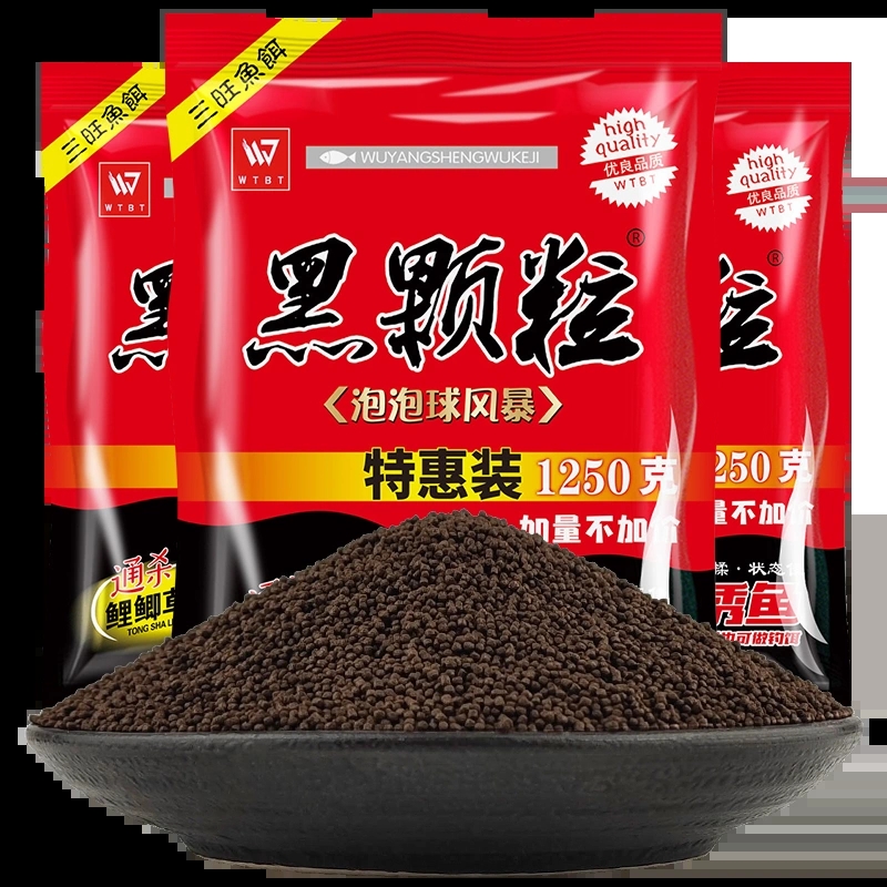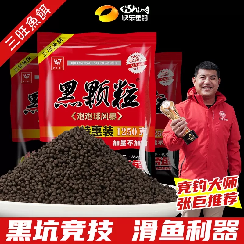 淘宝三旺黑颗粒泡泡球炫粒浮水颗粒鲤鱼鲫鱼草鱼饵料野钓鱼食窝料黑坑