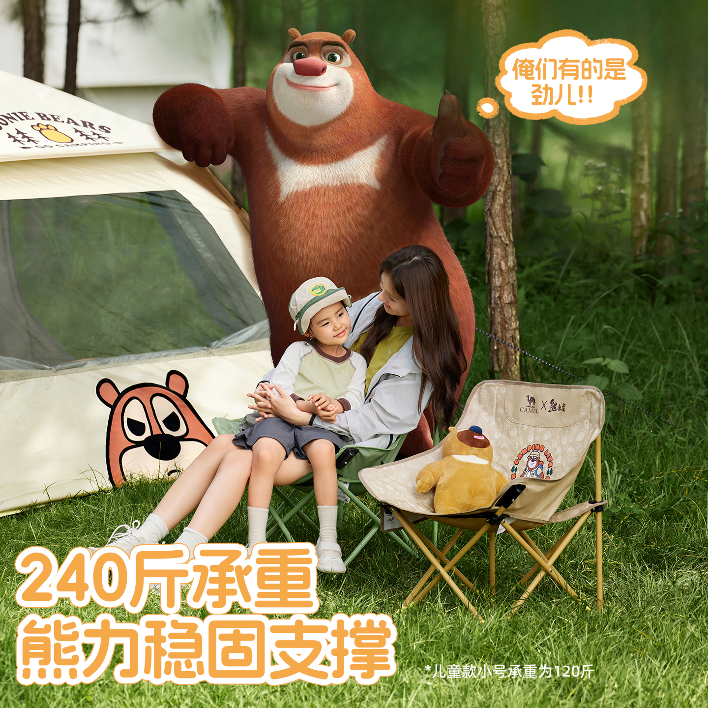 天猫骆驼熊出没正版联名月亮椅户外露营折叠椅板凳钓鱼椅便携家用椅子